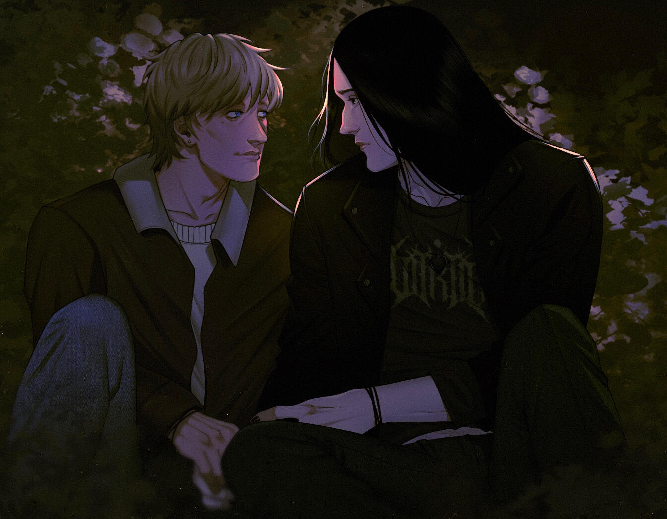 During their high school years, both Malachi and August were too nervous to truly approach each other. The extent of their relationship was August sticking up for Malachi when he noticed others picking on him. Malachi was always grateful but never knew how to express it, always running away before August could say anything. He didn’t know why August made him so nervous but he didn’t want to dwell too much on it. August always thought of Malachi as a mystery, someone he could never quite figure out. But he preferred it to stay that way. Keeping Malachi at a distance meant he wouldn’t have to confront what this obsession with him really meant.After they both graduated, they seemed to run into each other more and more. August became a familiar face at the record shop Malachi worked at (only when Malachi was scheduled to work), always asking for random music recommendations that they both knew August wasn’t really interested in. They crossed paths several times on the trails of Olympic National Park, Malachi always trying to turn tail and run. But one day August stopped him, forcing a long awaited and proper conversation between the two. In that moment they both realized their true feelings towards each other.